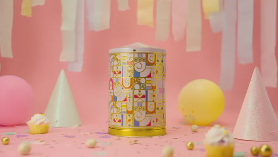 Musical birthday tin filled with sweets and snacks for a very special, very happy birthday surprise! Rotates and sings 'Happy Birthday'.