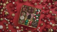 Spread festive cheer with this Christmas gift basket—a shiny red ornament-shaped tin filled with an irresistible selection of gourmet holiday treats. Inside, you’ll find indulgent Belgium hazelnut truffles, chocolate-covered Oreos, candied chocolate almonds, milk chocolate Christmas almonds, holiday snack mix, foiled chocolate balls, and peppermint bark pieces.